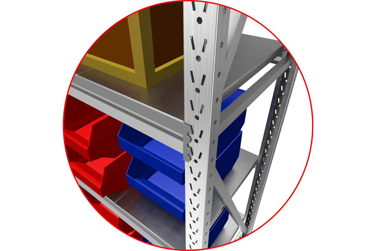 Оцинкованную среднегрузовую модель металлических стеллажей (СГР ОЦ) применяют для оптимизации хранения товаров в автосервисах, магазинах, промышленных предприятиях и на складах с ручной обработкой груза.